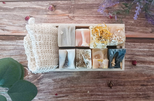 Indulge in the ultimate pampering experience with our luxurious handcrafted soap and skincare products gift set. Carefully curated and expertly crafted, this collection brings together the finest natural ingredients to nourish, hydrate, and rejuvenate your skin. Whether you're treating yourself or surprising a loved one, our gift set is sure to delight the senses and elevate the skincare routine to new heights of luxury.